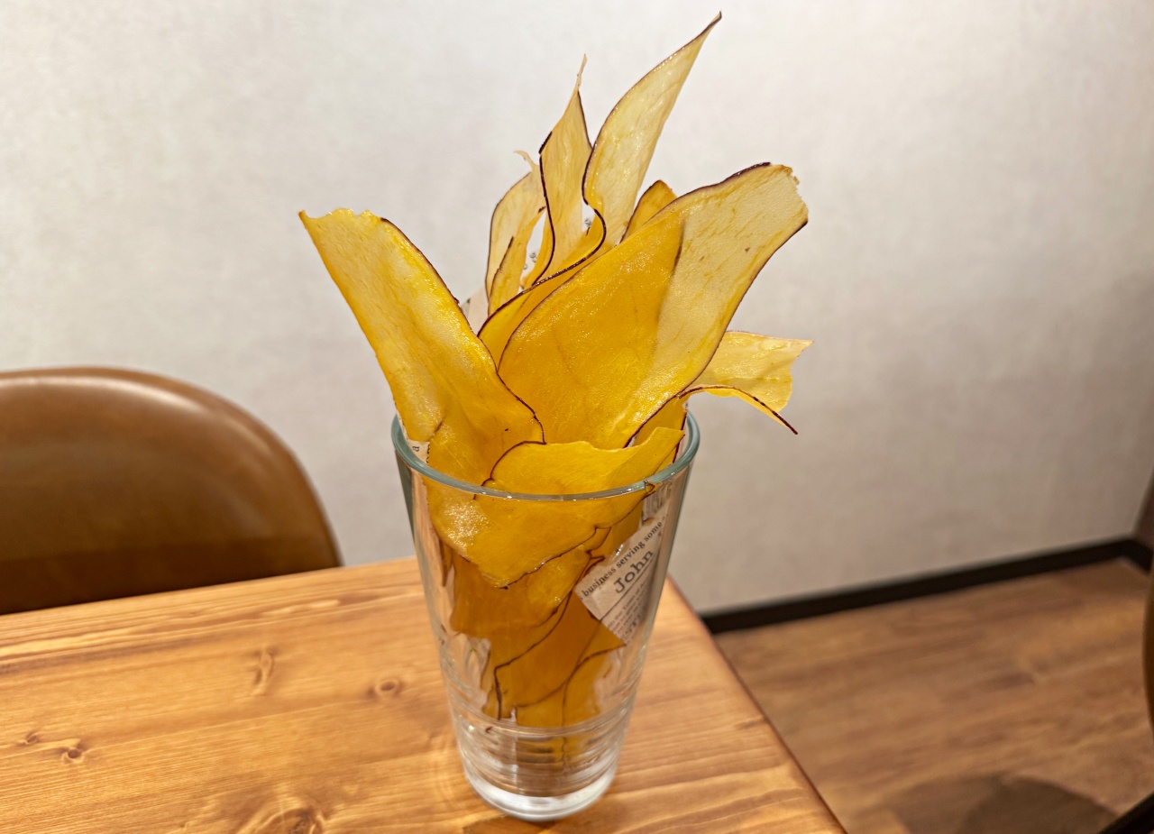 最後はサツマイモチップスをデザート感覚で。 マスカルポーネのまろやかさが加わり、心もお腹も満たされます。