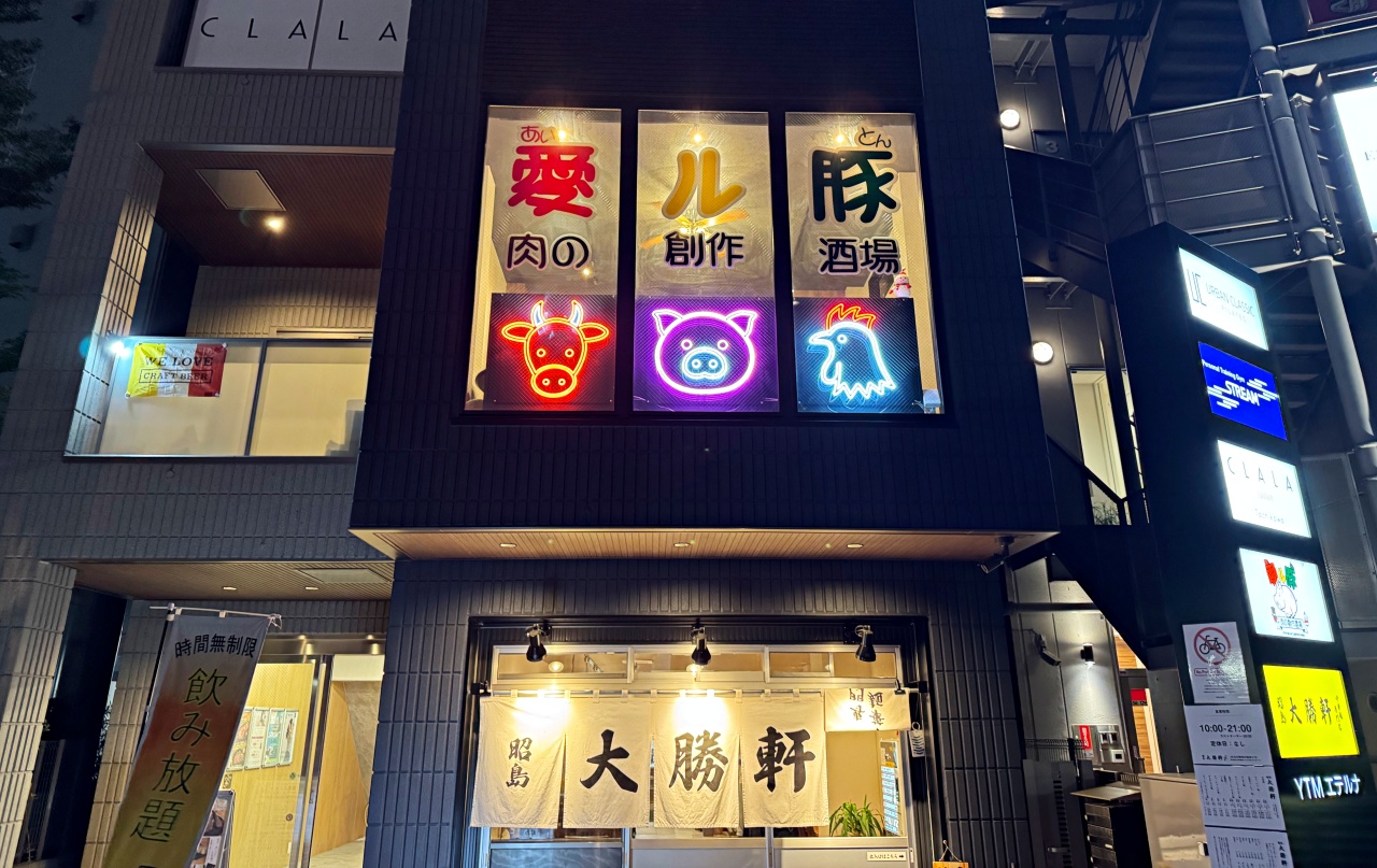 場所は「昭島大勝軒 立川店」の2階。可愛らしいネオン看板が目印ですよ。
