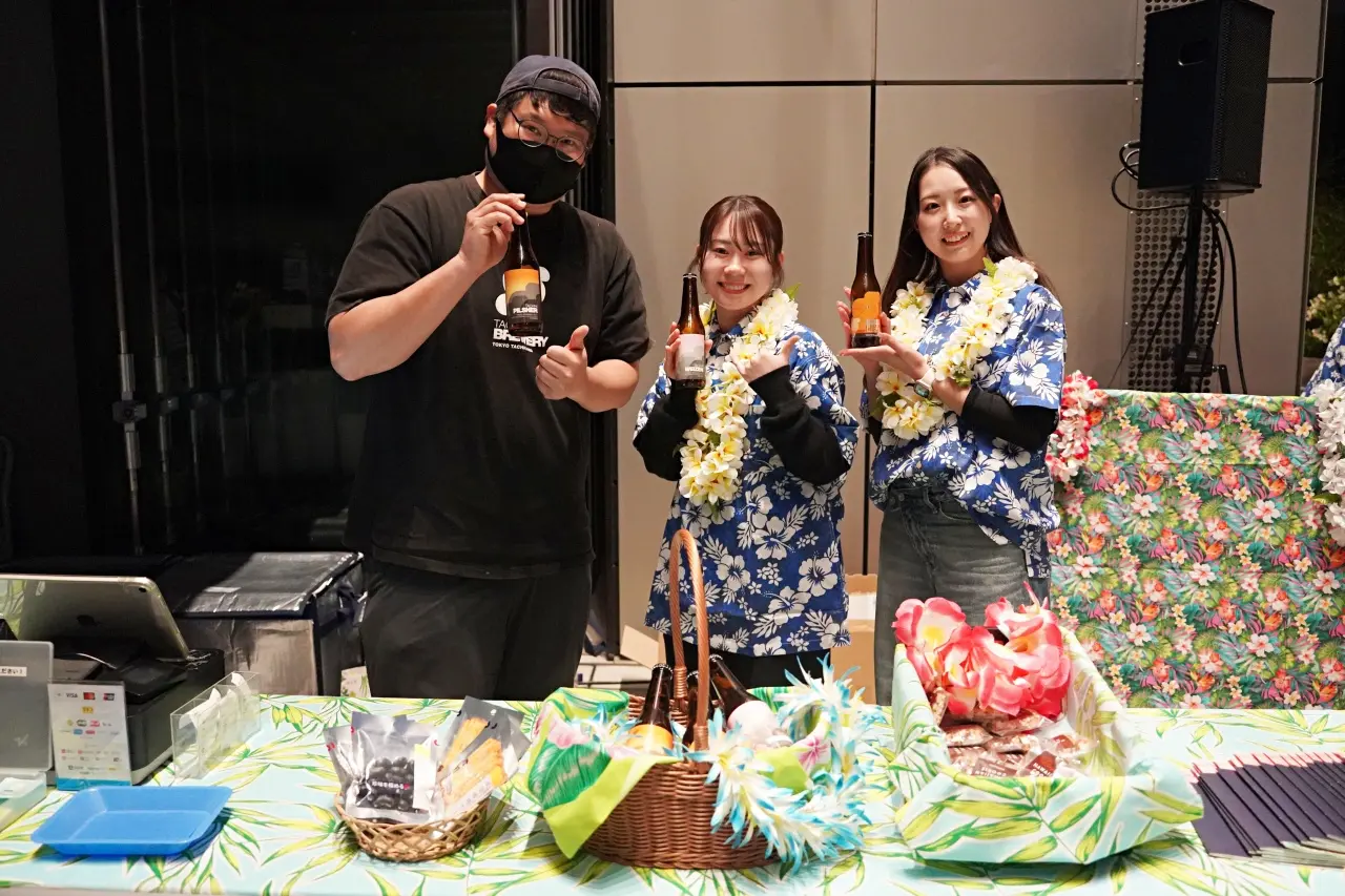 昨年度に続き、今年も立飛ビールの瓶ビールの販売があり、「会場にはハイテーブルも設置され、立飛ビールを片手に、ゆったりと『大人のフラ』を楽しむ贅沢なひととき。でした。