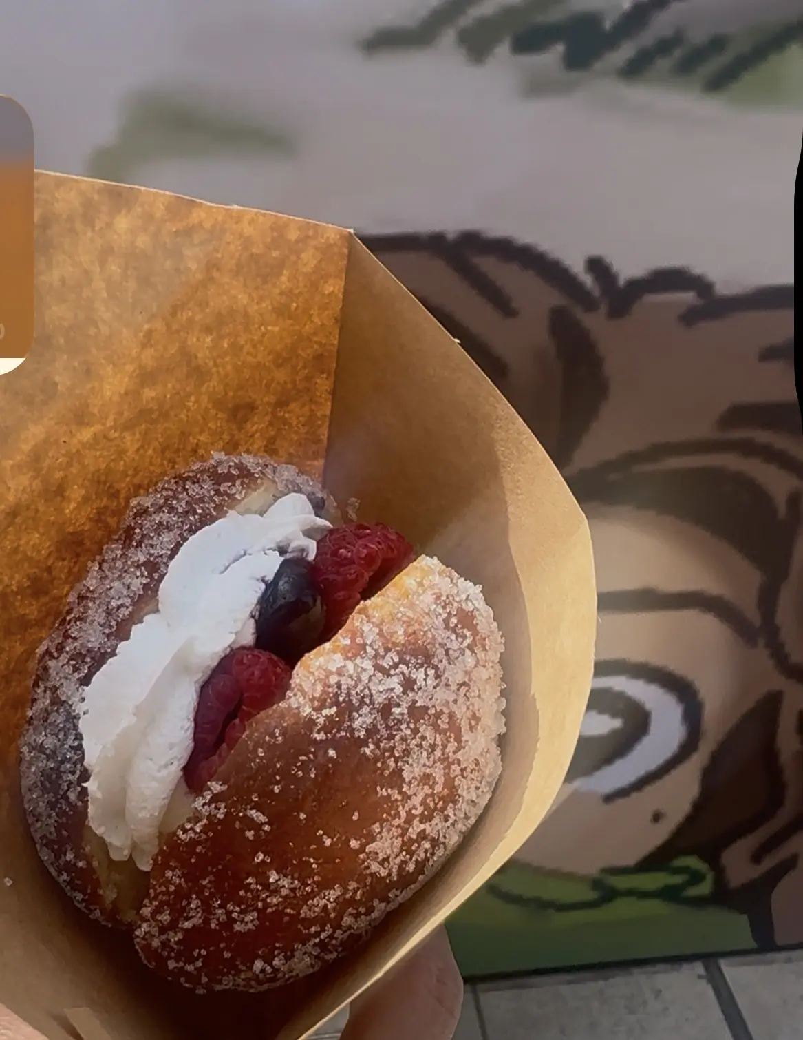 ミックスベリー600円。見た目も華やかなミックスベリーのマラサダ(600円)。一口食べれば、ベリーの爽やかな風が口いっぱいに広がりました。