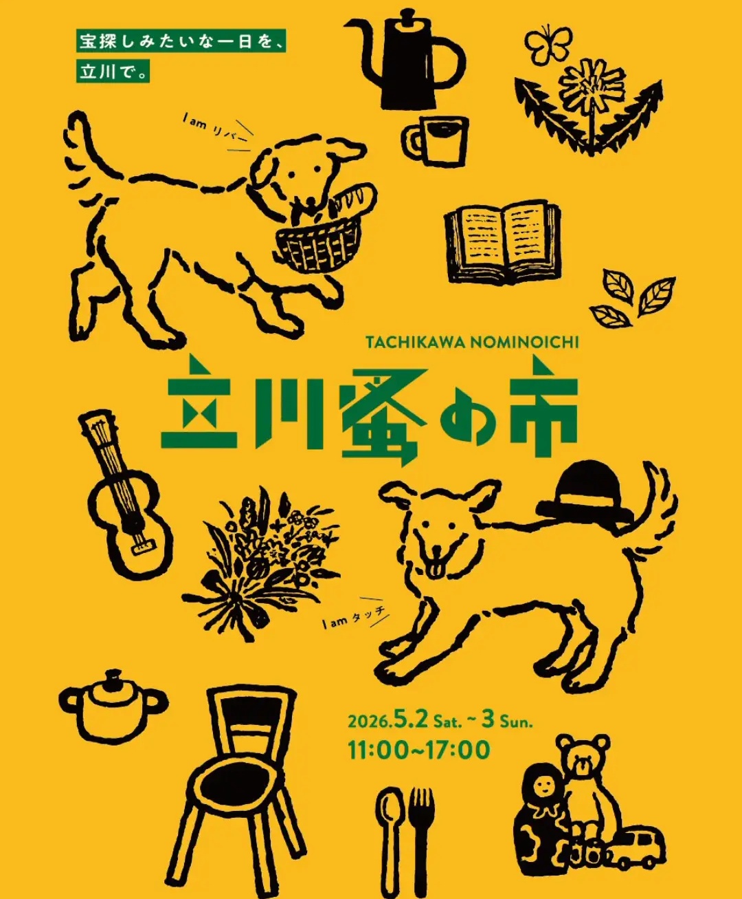 初開催となる「立川蚤の市」は、掘り出し物との出会いはもちろん、グルメやワークショップ、スタンプラリーまで楽しめる充実のイベント。